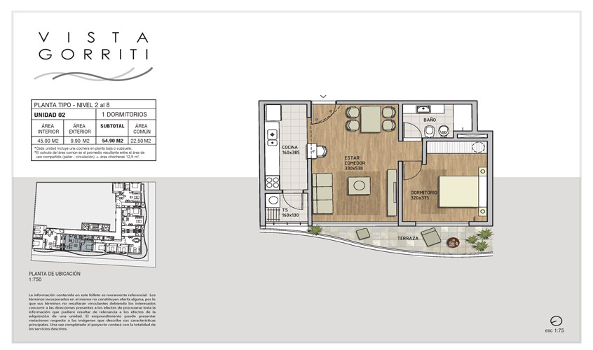 48 departamentos de 1, 2 y 3 dormitorios, todos con terraza principal de servicio y cochera.