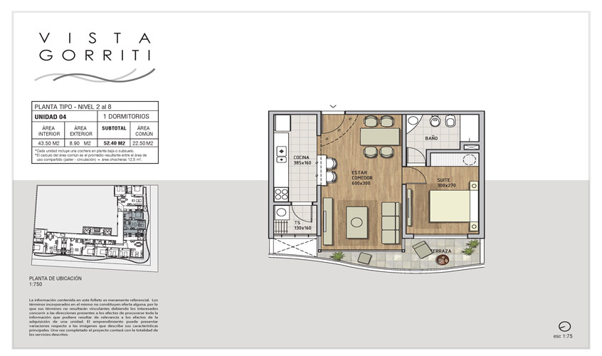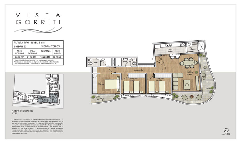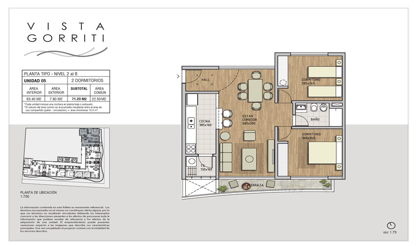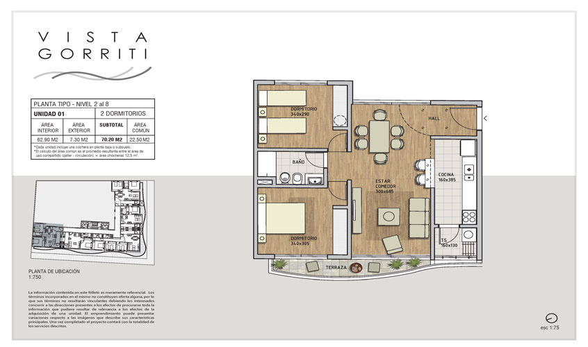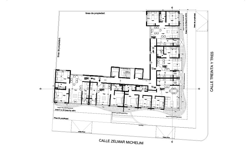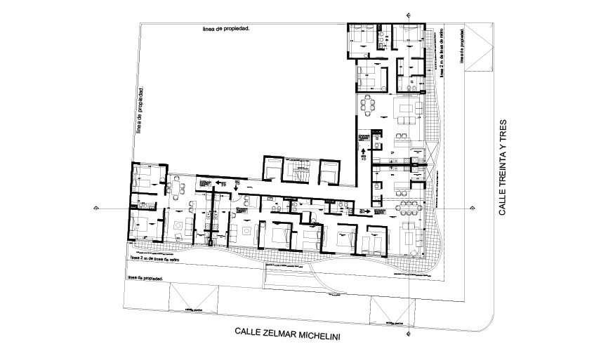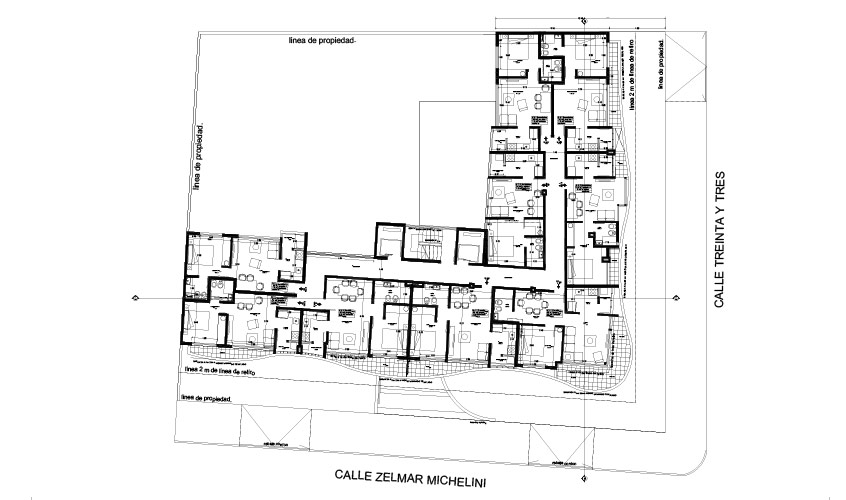 2° a 8° Piso: 2 unidades de 2 dormitorios + 2 unidades de 1 dormitorio + 1 unidad de 3 dormitorios.